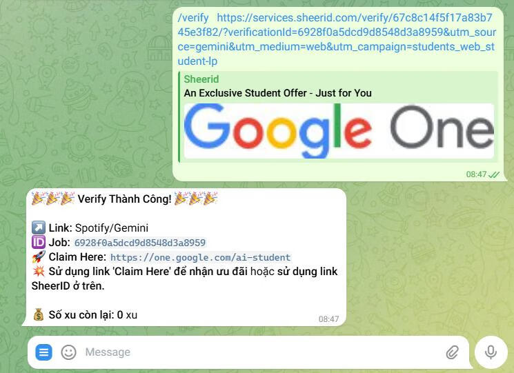 例如:/verify https://services.sheerid.com/verify/67c8c14f5f17a83b745e3f82/?verificationId=6928f0a5dcd9d851233a8959