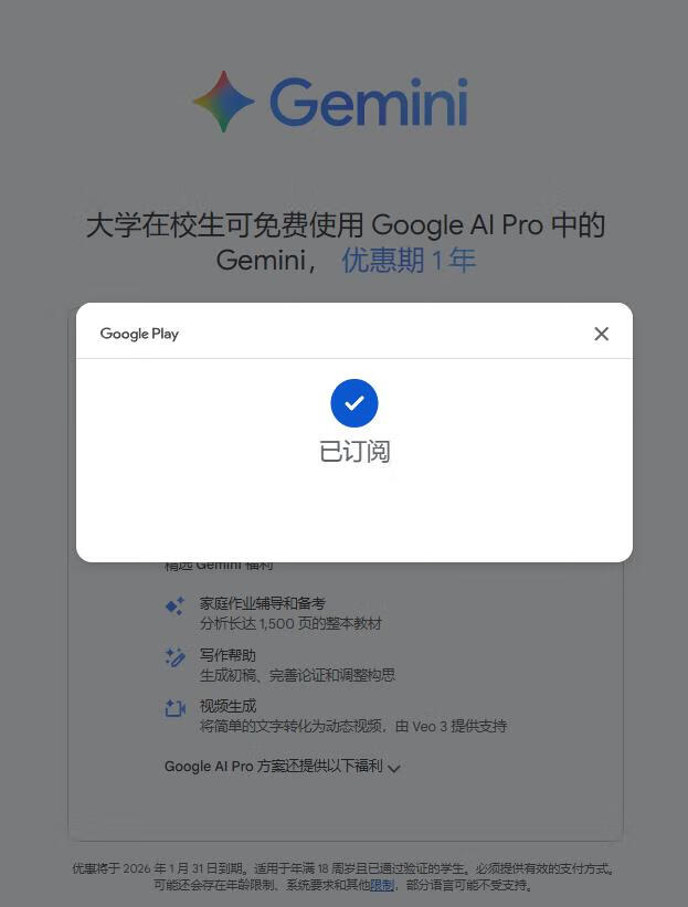 学生必看!Gemini 3 免费一年开通教程(3 分钟快速搞定)