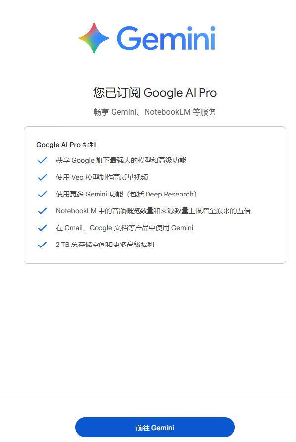 7,订阅成功后访问:https://gemini.google.com/ 即可享受AI Pro 了!