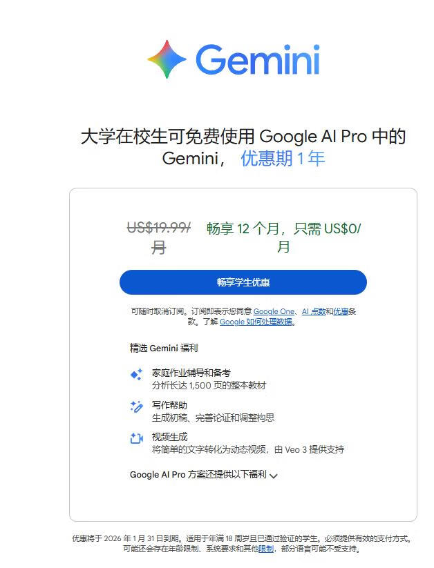 学生必看!Gemini 3 免费一年开通教程(3 分钟快速搞定)
